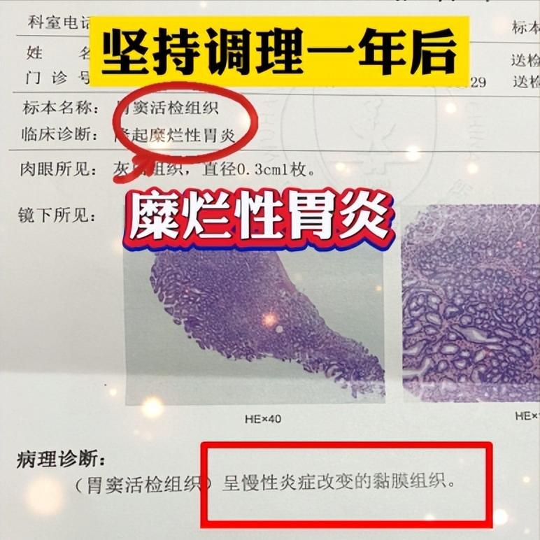 In the second month of treatment, the patient's belching disappeared, the frequency of acid reflux decreased by 80%, nighttime burning sensation significantly reduced, and sleep quality improved; after six months, a follow-up gastroscopy showed that the erosions had basically healed; one year later, another follow-up examination revealed significant improvement in atrophic gastritis, with intestinal metaplasia completely disappearing!