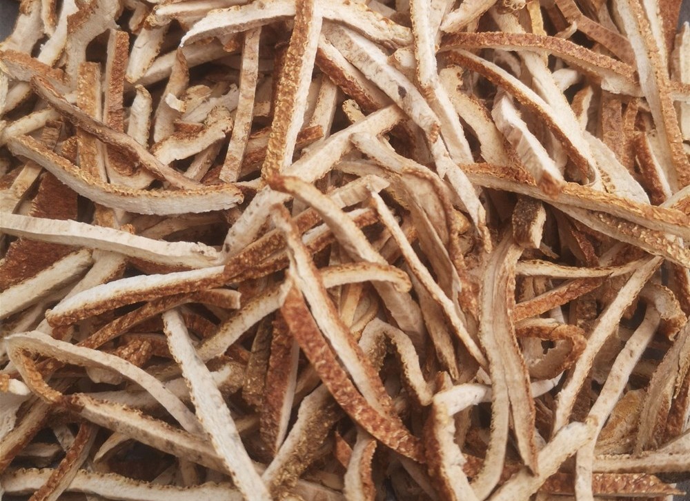 Tangerine peel is the fruit peel of the citrus plant from the Rutaceae family and its various related citrus species. It is also known as Chenpi because it is considered more effective when aged for medicinal use, and it is one of the six aged herbs in traditional Chinese medicine. The tangerine peel produced in the Xinhui region of Guangzhou is of superior quality and is also referred to as Guang Chenpi or Xinhui peel. It is commonly used raw or stir-fried.